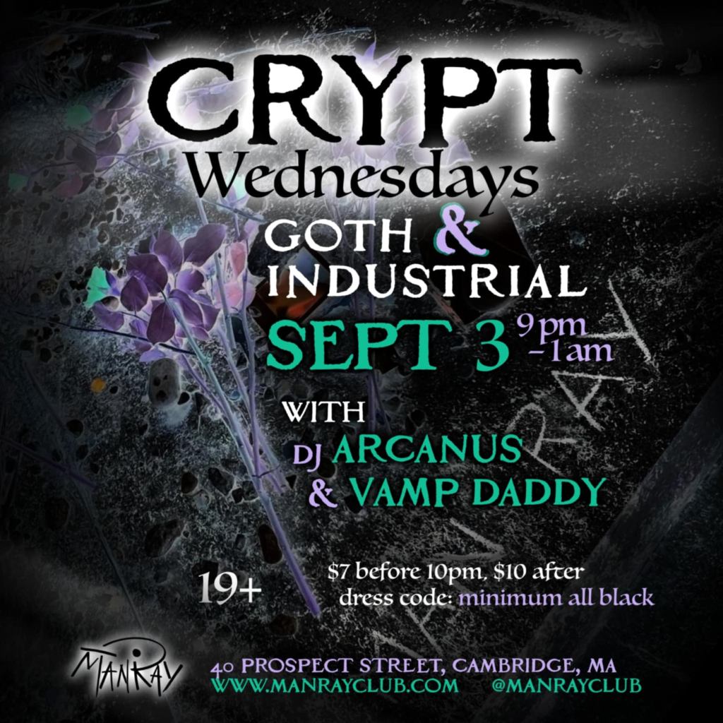 On September 3rd, I had the opportunity to guest DJ for CRYPT Wednesdays at ManRay in Cambridge, spinning alongside DJ Arcanus. The night was a mix of darkwave, goth, post-punk, and industrial, moving between moody textures and pounding club energy.